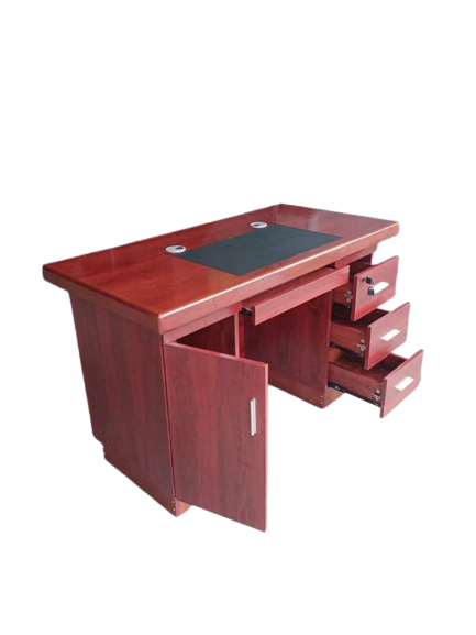 1.2 meters executive imported desk if a quality office fitment made of pure MDF. It consists of 3 lockable drawers on one side (right side) and one lockable door on the other side (left side). It also consists of a mounted black writing pad (for easier writing ) and two wire managers for essential wire arrangement of various electronics used to effect your day to day tasks.