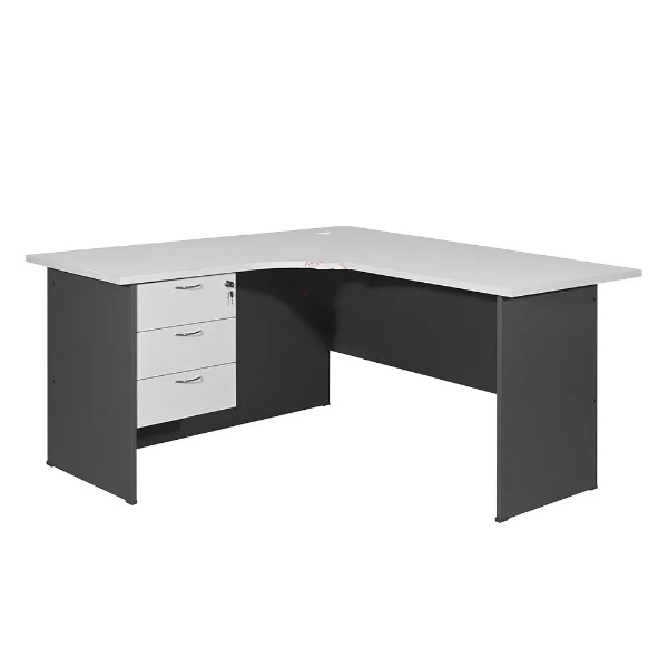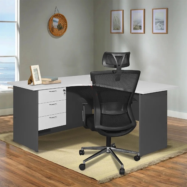 These three drawers are also pretty sturdy and smooth. This 140cm L-shaped office table will redefine your workspace with its innovative design and practical features. Its L-shape means it can fit into any space and has desk space on both sides for productivity.