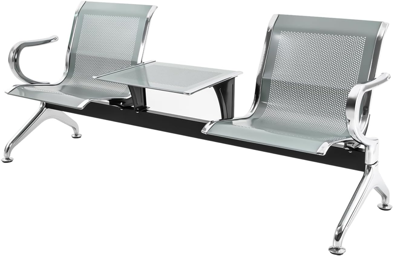 Our 2-seater waiting bench with coffee table is supported by four sturdy steel legs and also has a crossbar help, with greater strength and durability, so that each seat can support about 300kgs. Therefore, it can be used by both adults and children.
