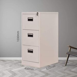 Dimensions and Structure: Standing at a height of approximately 2 to 3 feet, with a width spanning 1 to 1.5 feet and a depth of around 1 foot, 3 drawer office cabinet strikes the perfect balance between functionality and space-saving design. Its sleek and slender silhouette effortlessly integrates into any office layout, maximizing floor space without compromising on storage capacity.