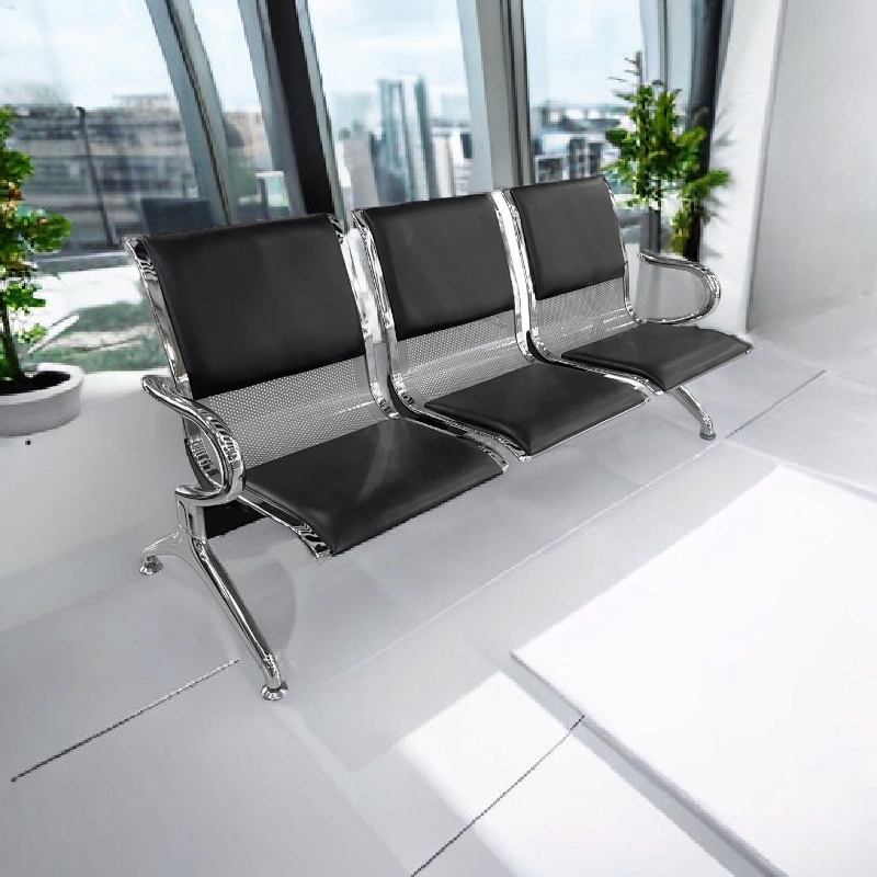 Constructed with Stainless Steel and quality PU leather. Stylish and economical, durable for long time use. The guest can put their hands on the armrest to rest their body. When children sit on the 3-link metallic waiting bench, they can hold the armrest, so will not be easy to fall down.