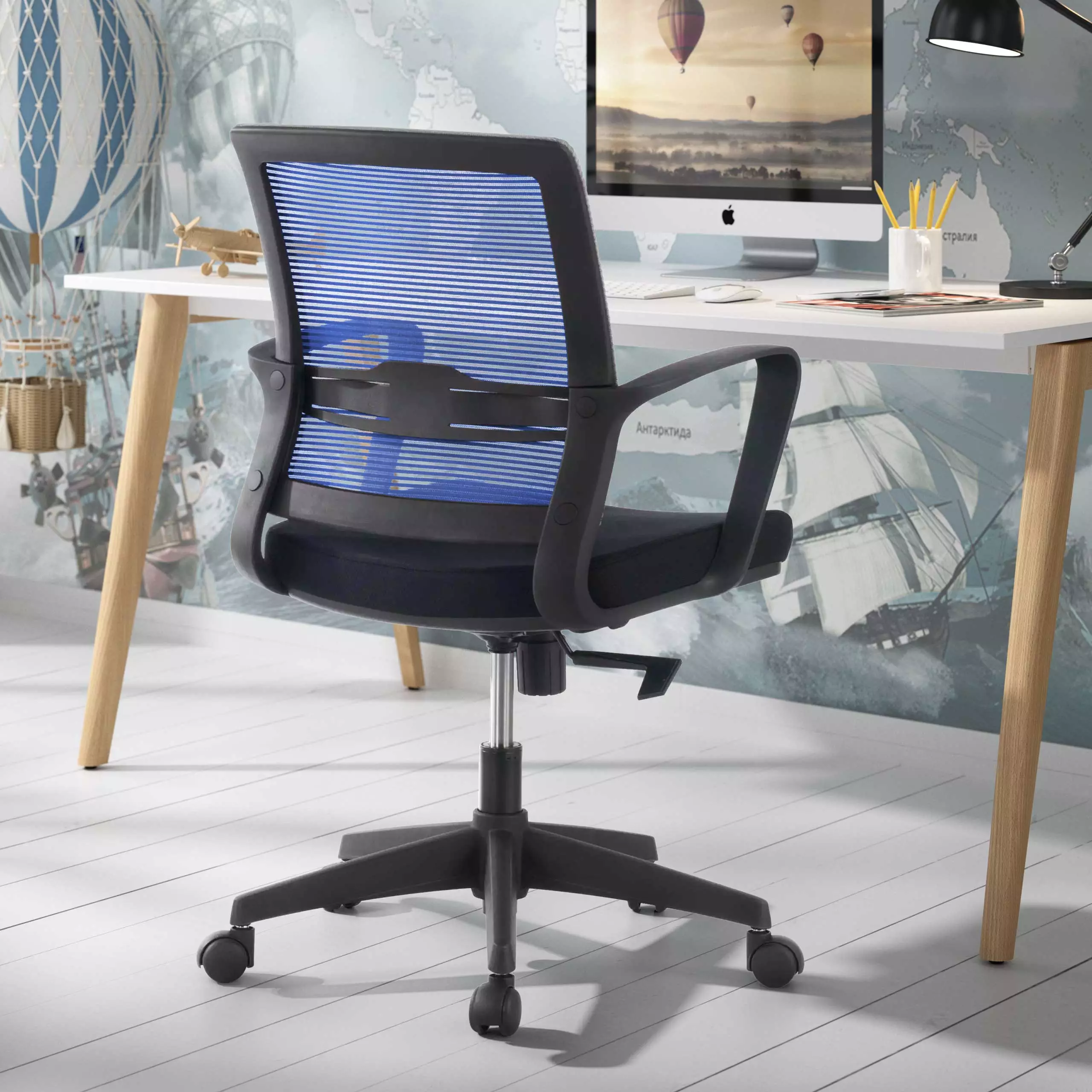 The bottom of this Blue ergonomic medium back seat is made of heavy nylon material, which has better stability than ordinary chairs.