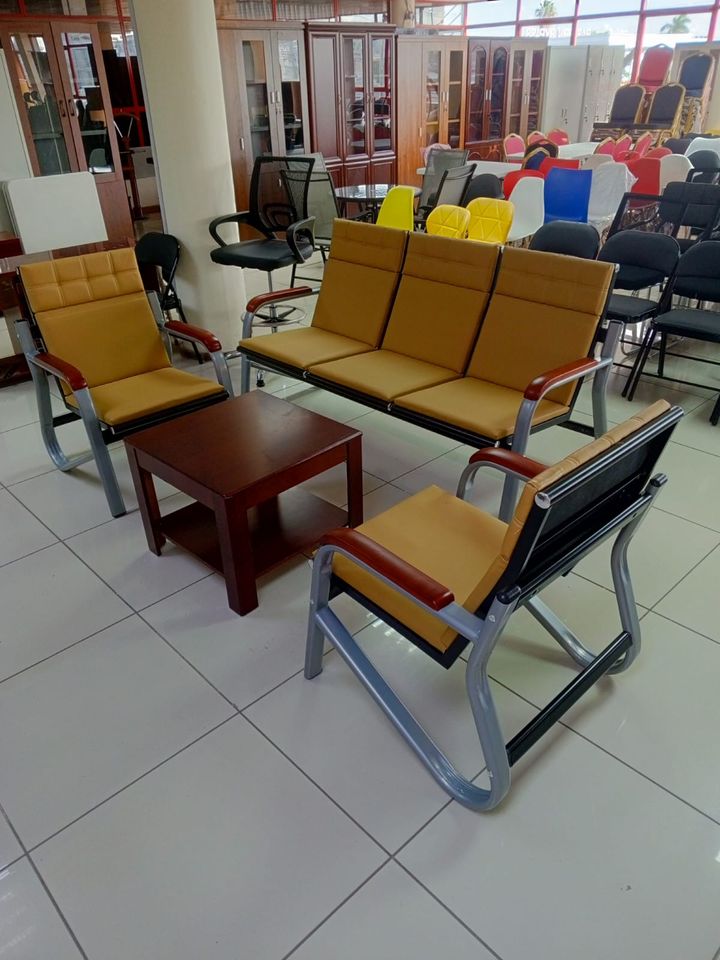 This Brown 5-seater office reception sofa Set gives you more seating to entertain your guests and make your guests feel at home. It fits in a spacious waiting room.