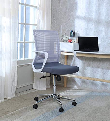 - MULTI-FUNCTIONAL Single Point Back Recline Locking Mechanism helps users stay in an upright work position or a relaxed recline position. Mesh upholstered back with a lumbar support helps avoid/resolve back issues. Cushioned Fabric Upholstered Seat, Fixed Rounded Arms, Tilt Tension Control, Chrome plated Base and heavy duty caster wheels that allow you to move easily across carpeted and hard floor add to the ergonomics and sturdiness of the chair.