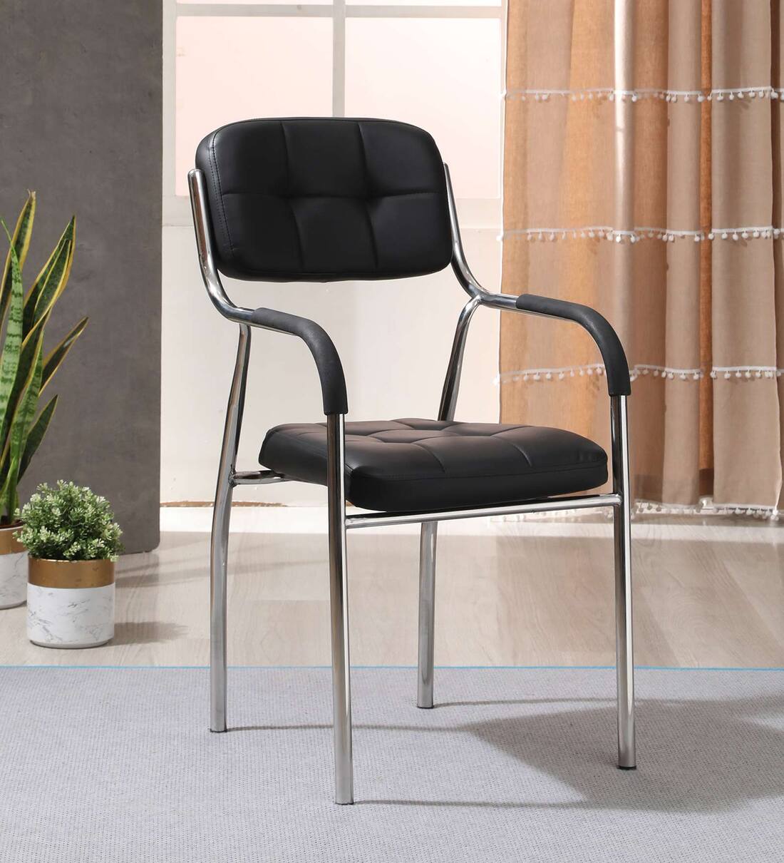Modern Furniture reflects the design philosophy of form following function prevalent in modernism. These designs represent the ideals of cutting excess, practicality and an absence of decoration. Multipurpose leather chair can be used for meeting, conference etc.coated metal leg to avoid rust .it is comfortable and durable. also stackable.
