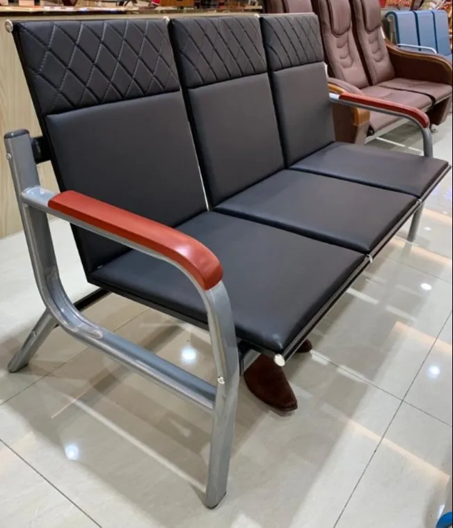 Stainless Steel Airport Sofa or Waiting Chair with Cushion. Handles comes in Wood.