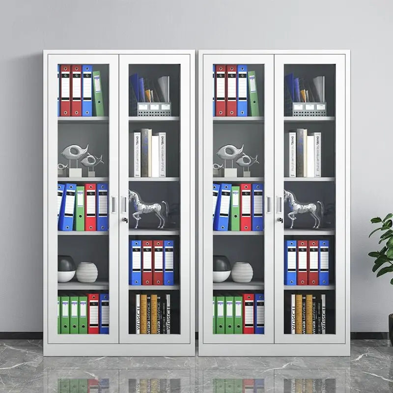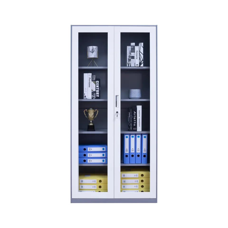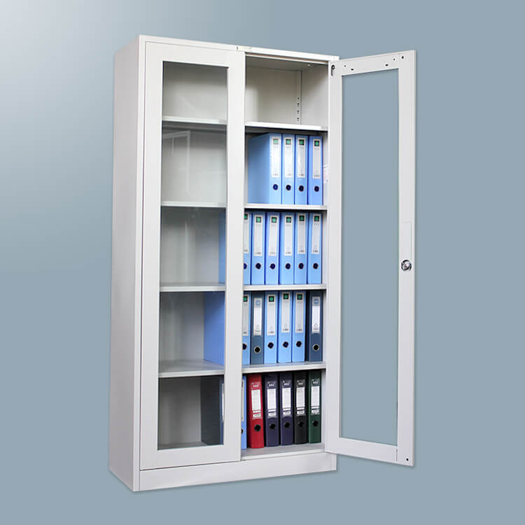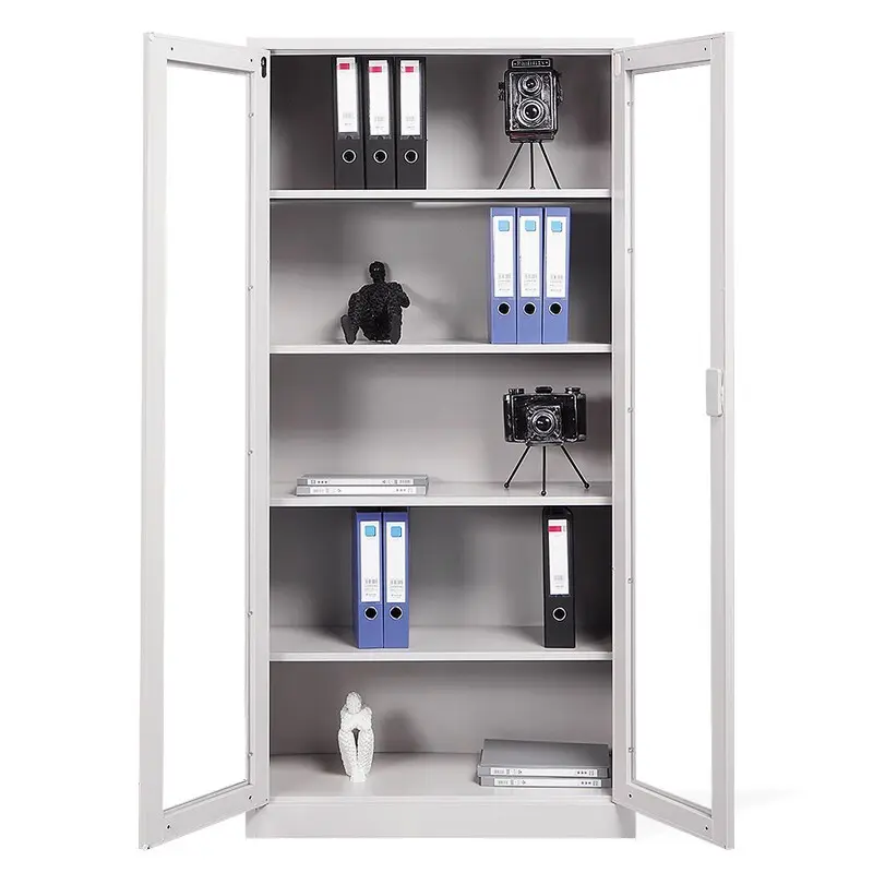 1800mm full height swing glass door metal filing cabinet in gray, with simple  stylish design, will be ideal for storing files and other office supplies, but also makes a great decorative addition to your office. This cabinet will suit any office decor thanks to its classic design. As it is made of high-quality metal, it is not only sturdy, but also easy to clean and maintain. Assembly is easy with our instructions.