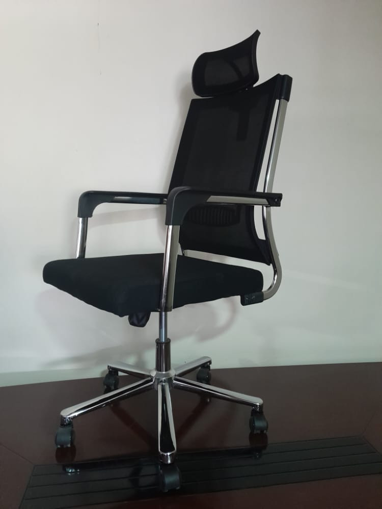-11%Our executive high-back office chair has an up and adjusting mechanism allowing you to adjust to a suitable sitting height. The high-back mesh allows for comfy long working hours and designed to support any lining weight. Swivel to allow for easy push to slide movements. The chair also has both left and right armrests on a normal sitting position, for easier rest.