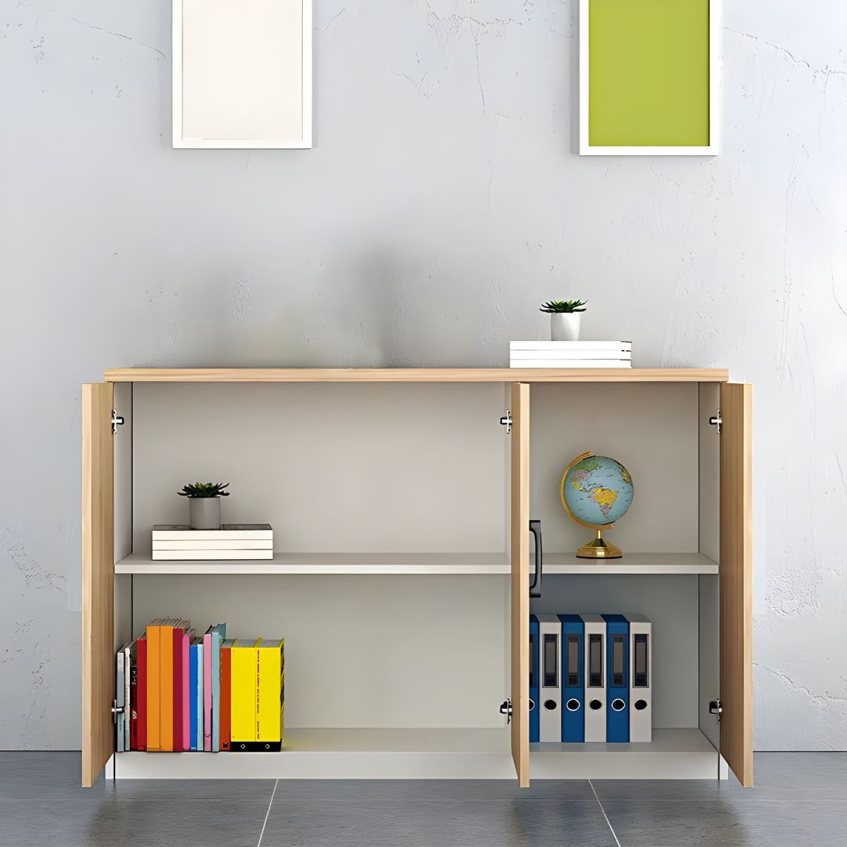 Lockable 4-door home office credenza space for convenient storage. The doors can be locked to provide higher security for your valuables and important items.