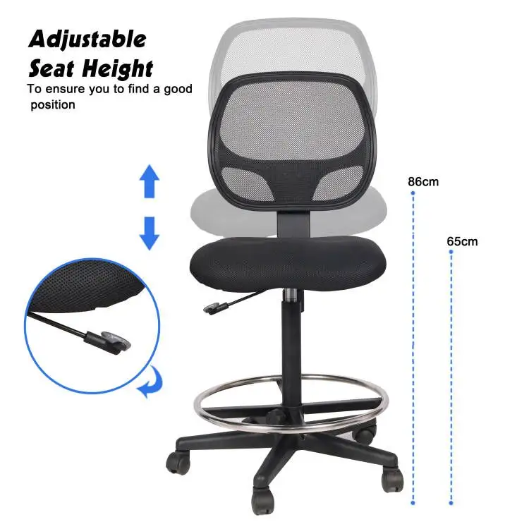 Space Saving: Armless mesh drafting chair allows your body closer to the desk while in use, while not in use you can easily slip the high desk chair under the desk for space saving. Perfectly choice for work, home or other small space.