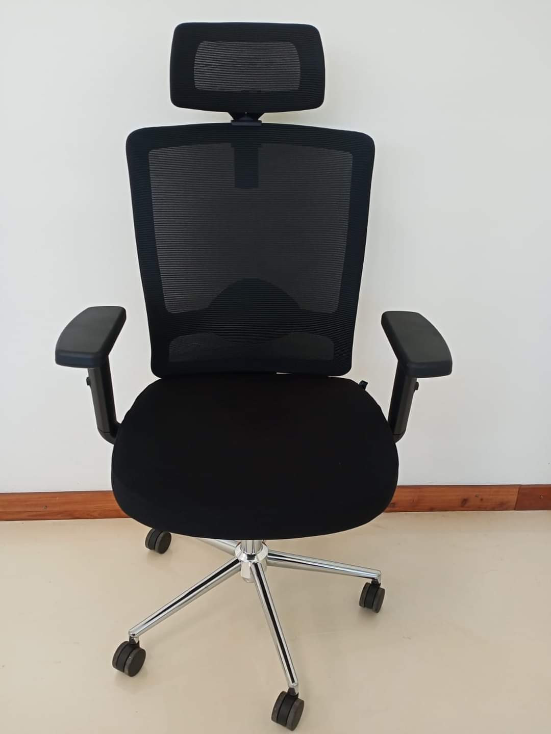 -18%Our executive high-back office chair has an up and adjusting mechanism allowing you to adjust to a suitable sitting height. The high-back mesh allows for comfy long working hours and designed to support any lining weight. Swivel to allow for easy push to slide movements. The chair also has both left and right armrests on a normal sitting position, for easier rest.