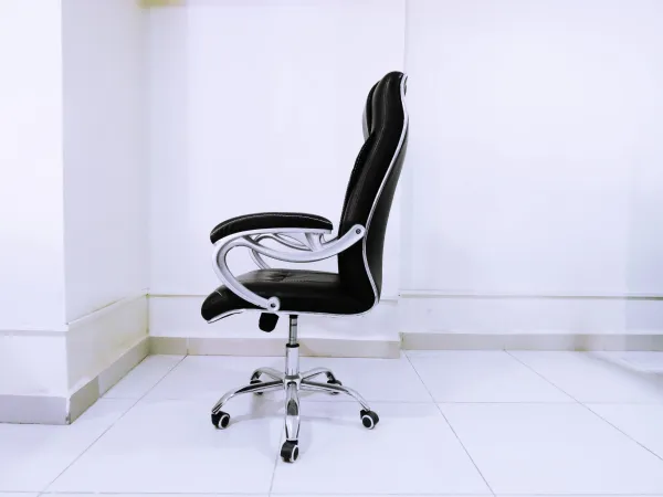 Comfortable executive office chair upholstered in black bonded leather with silver-finished accent. It’s Padded seat and armrests offer all day comfort and support, making it ideal for an office or conference room while it’s height adjustment feature, swivel, tilt-tension knob and smooth rolling casters for easy mobility. The pure leather executive office seats is suitable for any office space and equally blends with a variety of office chairs.